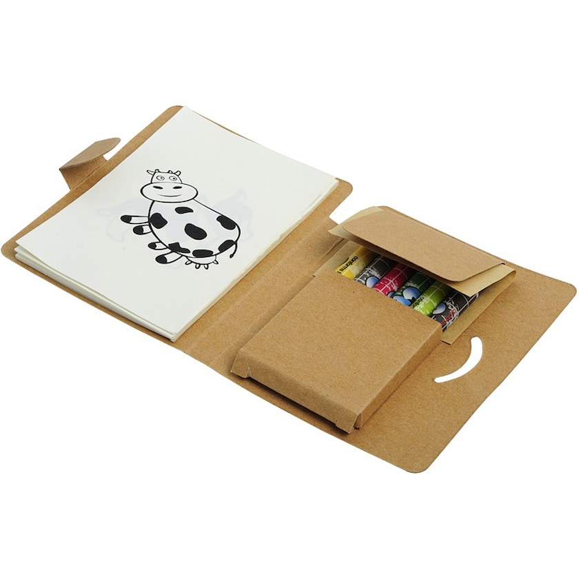 Set da colorare con pastelli e pagine da colorare. Il set contiene 6 pastelli, 8 pagine da colorare con motivi e 25 pagine vuote. La copertina è fabbricata in cartone e sul lato inferiore si trova uno smiley.