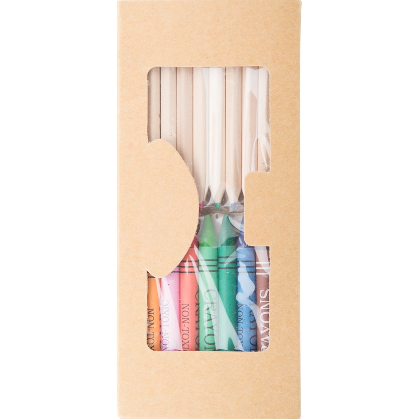 Set con 10 pastelli colorati e 9 pastelli a cera.