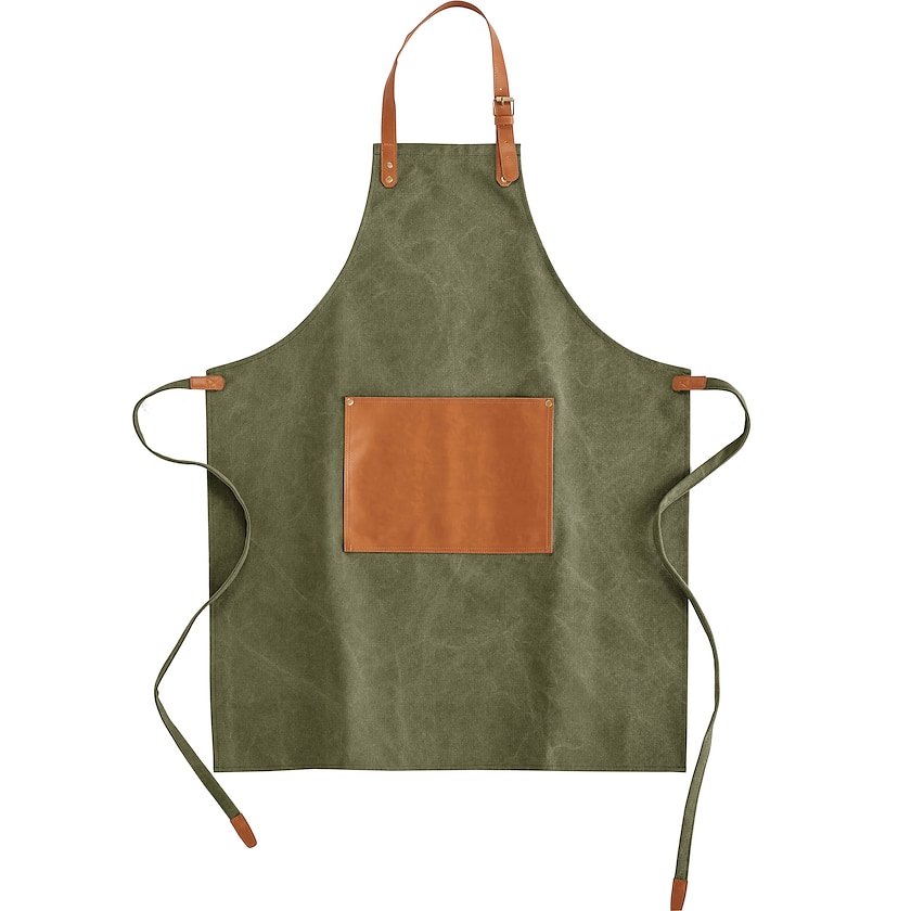 Grembiule esclusivo in tela di cotone délavé. Questo grembiule vanta pregiati dettagli in simil pelle. Ecco un grembiule che diventa solo più bello col passare del tempo!