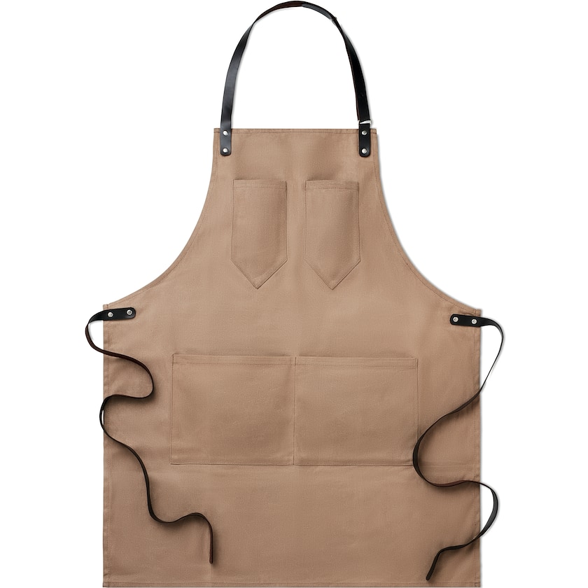 Grembiule di pelle di alta qualità. Con due taschini sul petto e due grandi tasche sul davanti. La scelta perfetta per chi cerca un grembiule in pelle di alta qualità personalizzato con stampa!