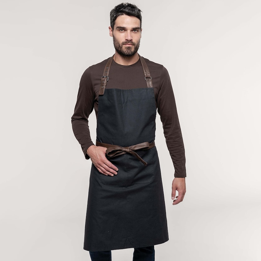 Grembiule dal look vintage. Il tessuto è trattato in modo speciale in modo da avere un aspetto invecchiato eleggero. Nella parte anteriore è una grande tasca con due spazi di archiviazione. Il grembiule ha 90 cm di lunghezza e 76 cm di larghezza.