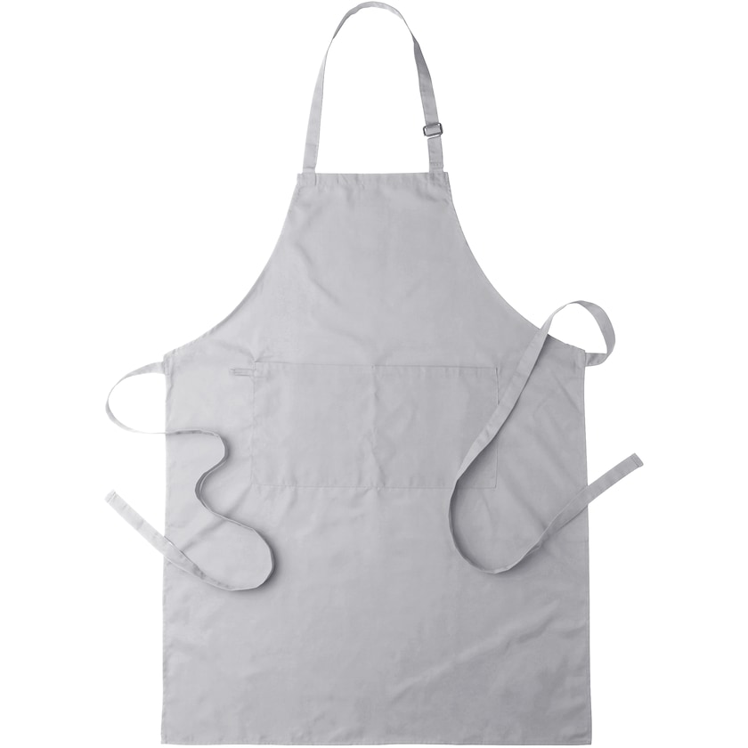 Grembiule economico con due tasche sul davanti. Il grembiule è realizzato con 80% di poliestere e 20% di cotone, il che conferisce un tessuto resistente in grado di sopportare molti lavaggi.