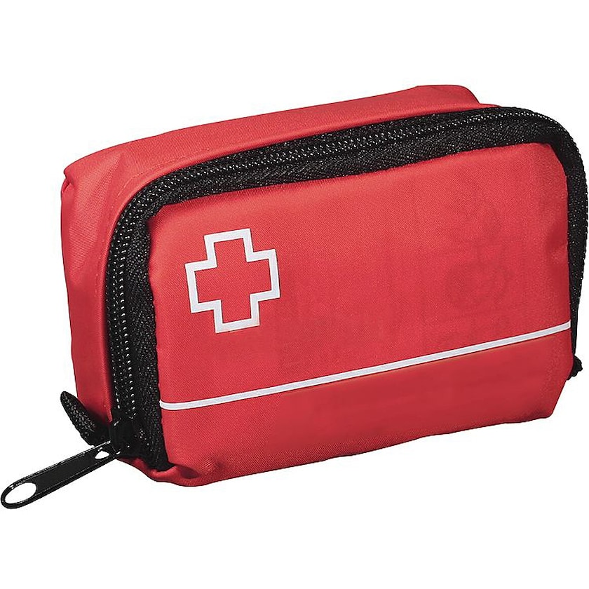 Questo kit di pronto soccorso contiene: 1 mascherina per respirazione bocca a bocca, 1 piccolo rotolo di bende (5x450cm), 1 salvietta disinfettante, 1 cerotto ampio (7x20cm), 1 salvietta umidificata, 1 benda (5x5cm), 5 cerotti, spille da balia, 1 forbice, 1 nastro adesivo, 1 fascia da braccio Stampa possibile solo a 1 colore.