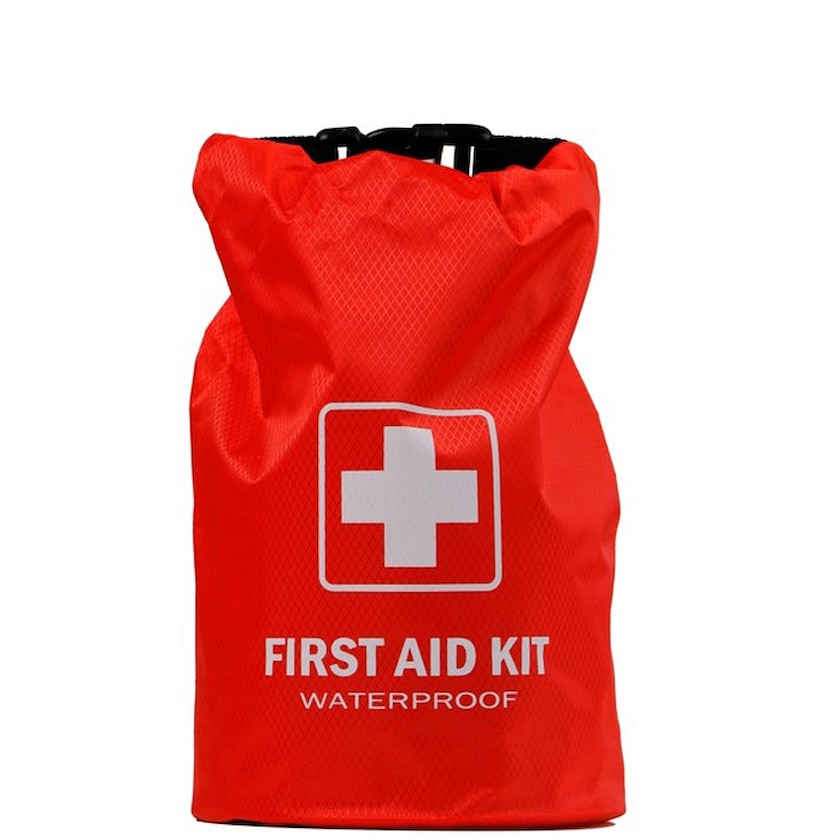 Kit di pronto soccorso impermeabile di alta qualità. Contiene bende, salviette disinfettanti, cerotti e altro ancora. È un kit perfetto da portare in barca.