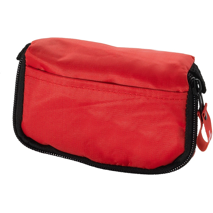 Kit pronto soccorso. 5 cerotti, 4 dischetti di disinfettante, benda, benda triangolare, 2 spille da balia, 5 garze e un paio di forbici. Il tutto in una custodia di nylon. 70D nylon