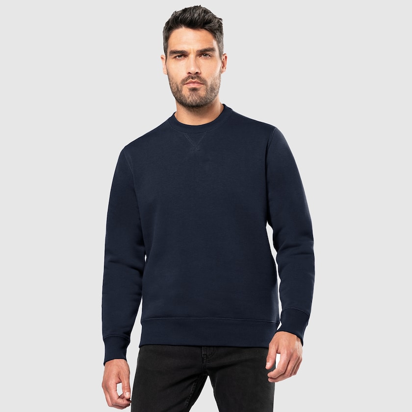 Felpa senza cappuccio in tessuto extra resistente. La felpa è di tipo set-in-sleeves ed è unisex.