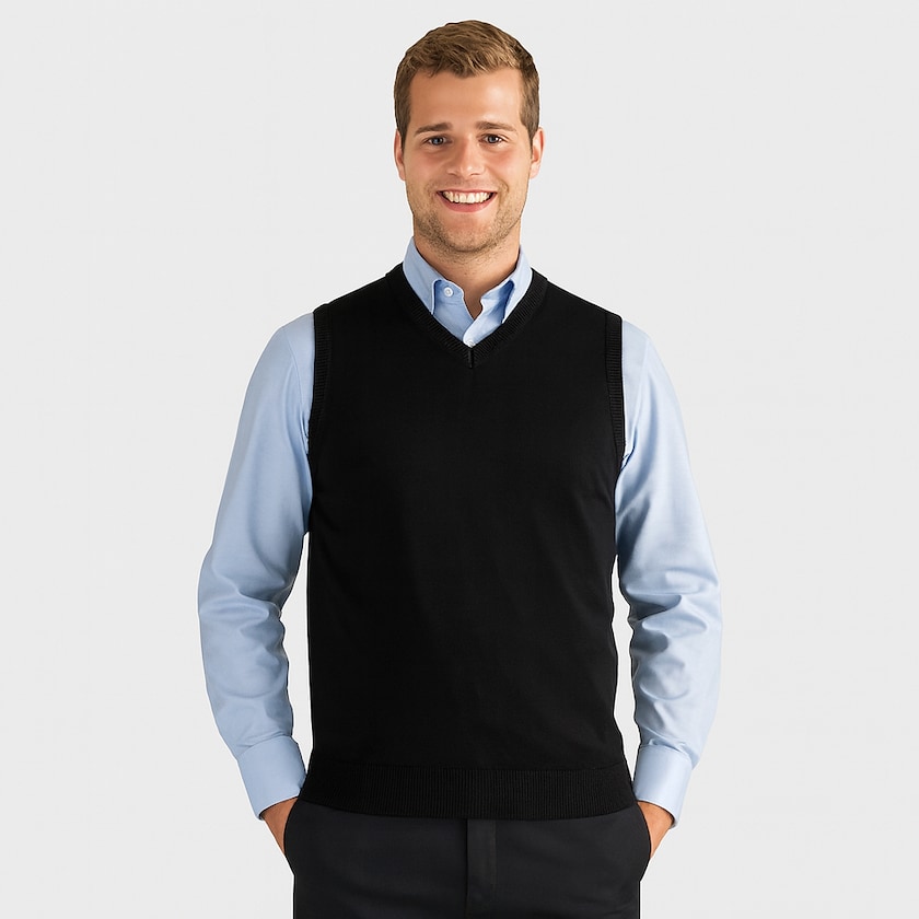Elegante maglioncino smanicato Russell. Slipovern è realizzato in tessuto misto di cotone Easy Care che combina la leggerezza del cotone alla morbidezza dell'acryl. Lavabile a 40 gradi e asciugabile in asciugatrice. Confezionato singolarmente in busta di plastica.