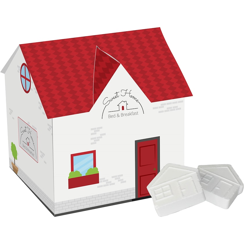 45 grammi di mentine in una casetta di carta. La casetta viene personalizzata interamente secondo i tuoi desideri. Scarica il modello di stampa e crea il tuo design unico.
