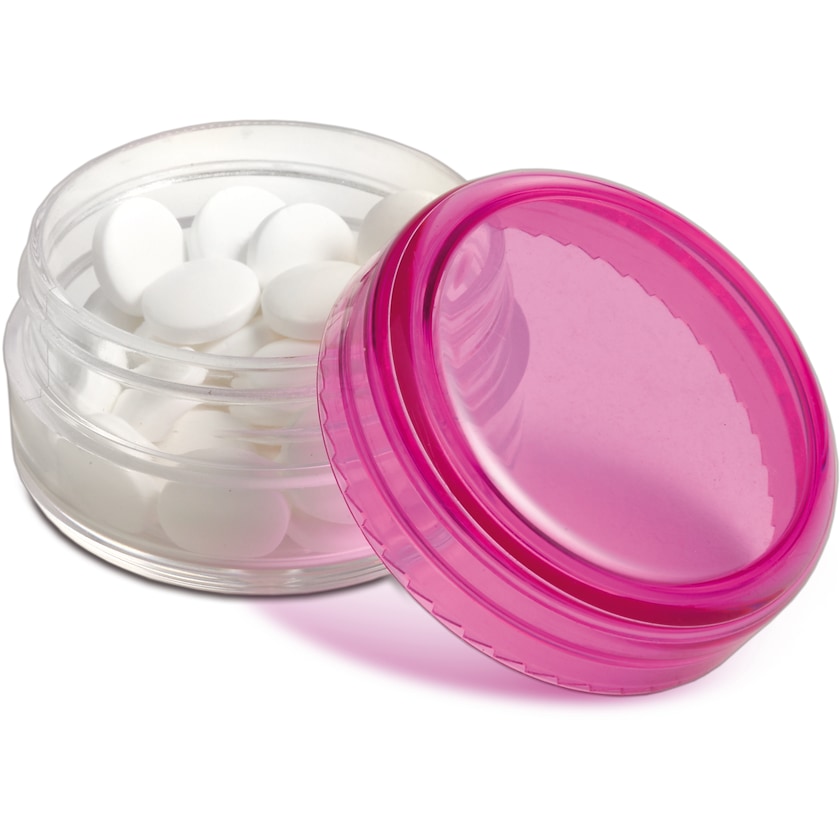 Barattolo con circa 12 grammi di mentine senza zuccero alla menta piperita. Un barattolo unico che farà molta pubblicità al vostro marchio nonostante il prezzo contenuto.