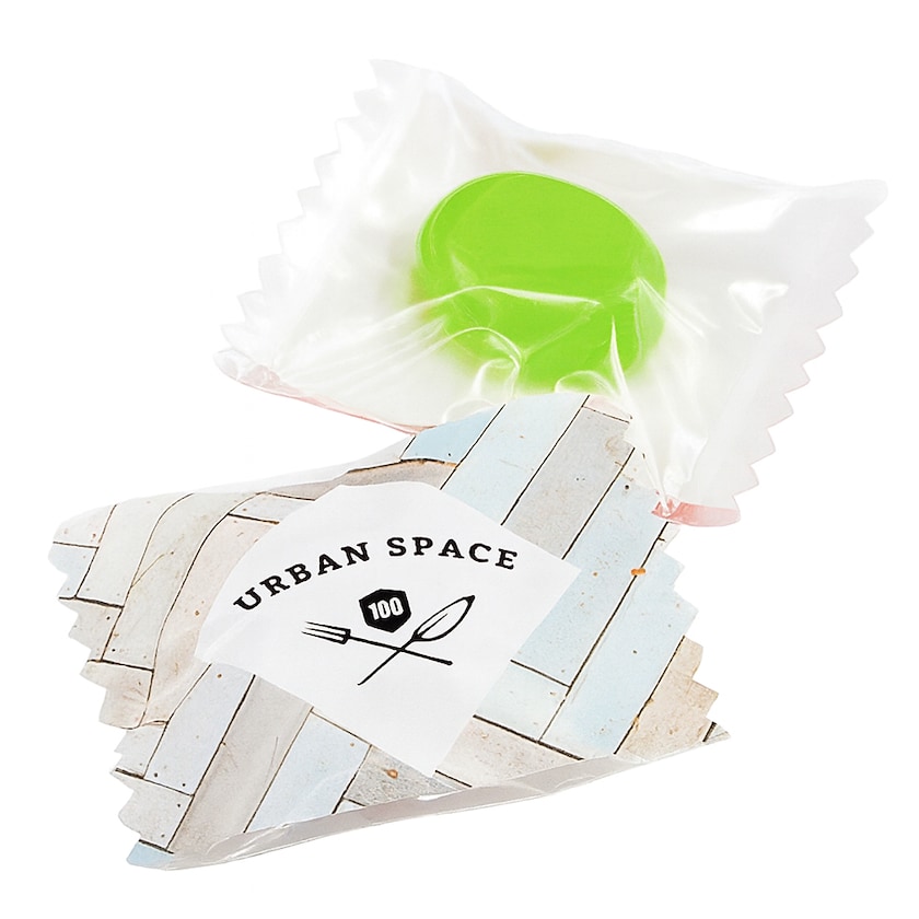 Caramelle personalizzate acquistabili da soli 1000 pz. Questa caramelle è particolarmente grande e pesa 6,5 grammi. Scegli tra i gusti mentolo o mix di frutta. L'intero lato anteriore viene stampato secondo i tuoi desideri.