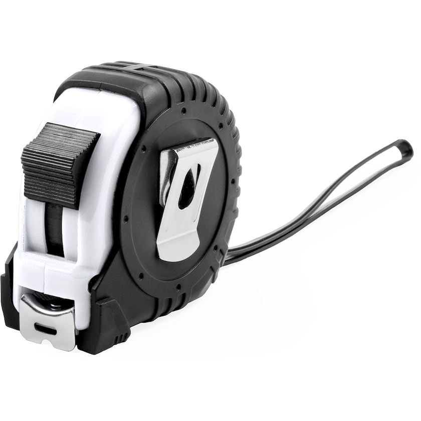 Metro a nastro che misura 7,5 metri. Hoffman ha funzione di blocco, fermaglio per cintura e laccetto da polso. La stampa viene posizionata sotto uno strato protettivo di resina epossidica.