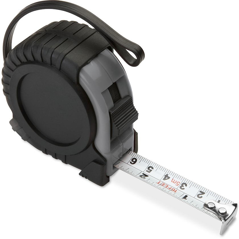 Metro a nastro con stampa fotografica in quattro colori. La stampa viene posizionata all'interno del cerchio e viene poi protetta con uno strato di resina epossidica. Questo metro a nastro è dotato di un laccetto e di un fermaglio in metallo sul retro.