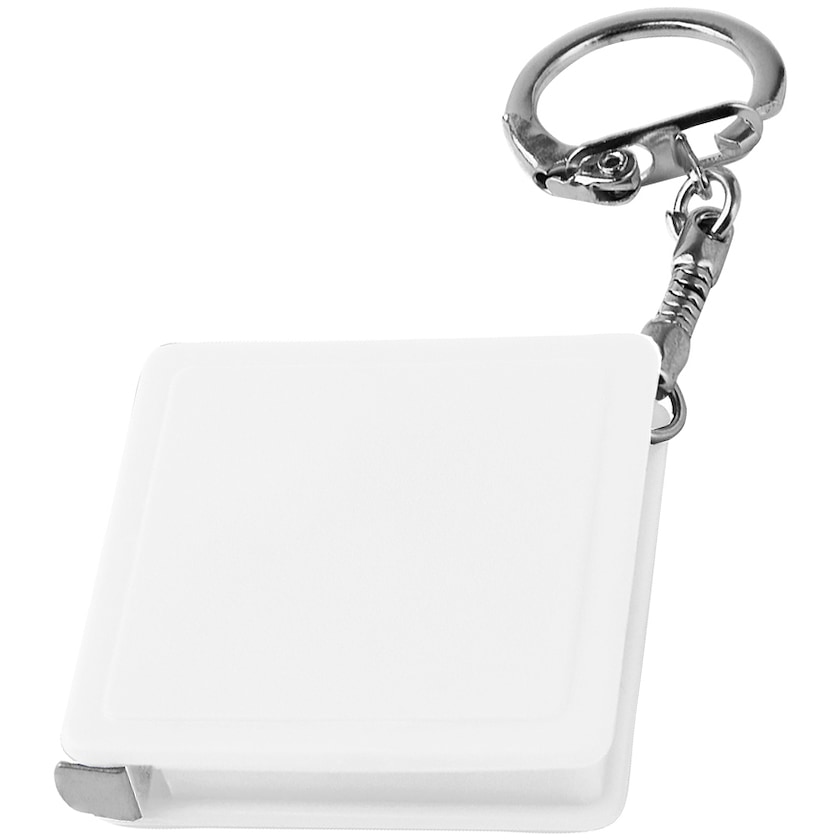 Conveniente metro a nastro dal pratico formato. L'anello di metallo permette di attaccare il metro al mazzo di chiavi. Può essere personalizzato solo con stampa a un colore.