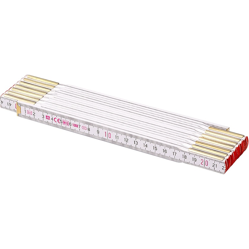 Metro pieghevole in legno da 3 metri per uso professionale. Il metro pieghevole è fabbricato in legno di faggio e conduttori in ottone. Il legno è dipinto con due strati di vernice ed una superficie protettiva. La produzione e stampa del metro pieghevole avviene in EU e conforme al certificato d'esame del tipo CE, alla classe di precisione CE III e CE conforme.