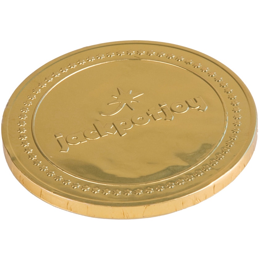 Moneta di cioccolato piccola con logo in rilievo. La moneta è laminata d'oro e riempita con delizioso cioccolato al latte. Il rilievo standard è soltanto effettuato su un lato. Per un costo addizionale può essere effettuato il rilievo su tutti e due i lati. Vendita solo in unità di 6000 pezzi.