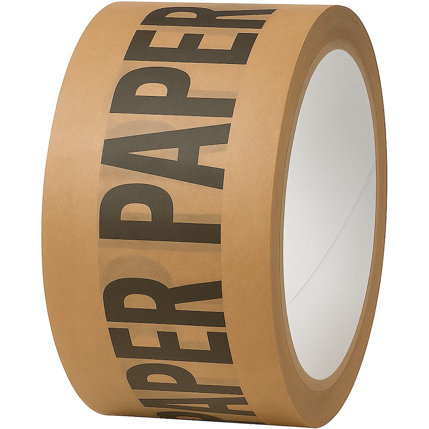 Nastro adesivo di carta. Per te che cerchi un'alternativa naturale! Questo nastro adesivo è prodotto in carta e la colla è in gomma naturale. La stampa è possibile in uno dei seguenti colori: PMS Warm Red, PMS Process Blue, PMS Reflex Blue, PMS 109, PMS Green, PMS Black o PMS White. È solo possibile la stampa a un colore. La qualità della stampa è garantita fino a 6 mesi dalla consegna.