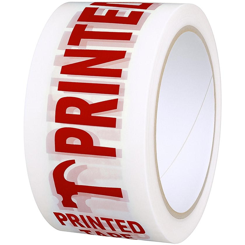 La stampa viene fatta con la c.d. stampa flexo sulla superficie esterna del nastro adesivo (flexoprint on top).