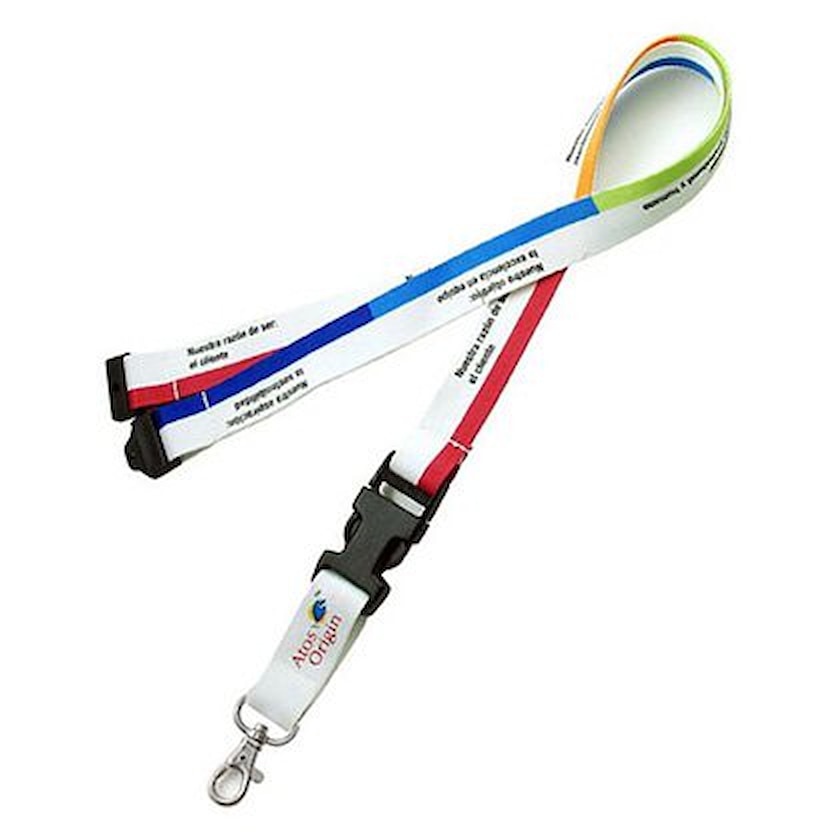 Lo sgancio veloce si trova vicino al moschettone e fa sì che eventuali chiavi possano essere tolte velocemente dal portabadge. La fibbia di sicurezza si trova dietro al collo ed è una fibbia anti soffocamento. Questo non vale per i prodotti 4679 e 4686.
