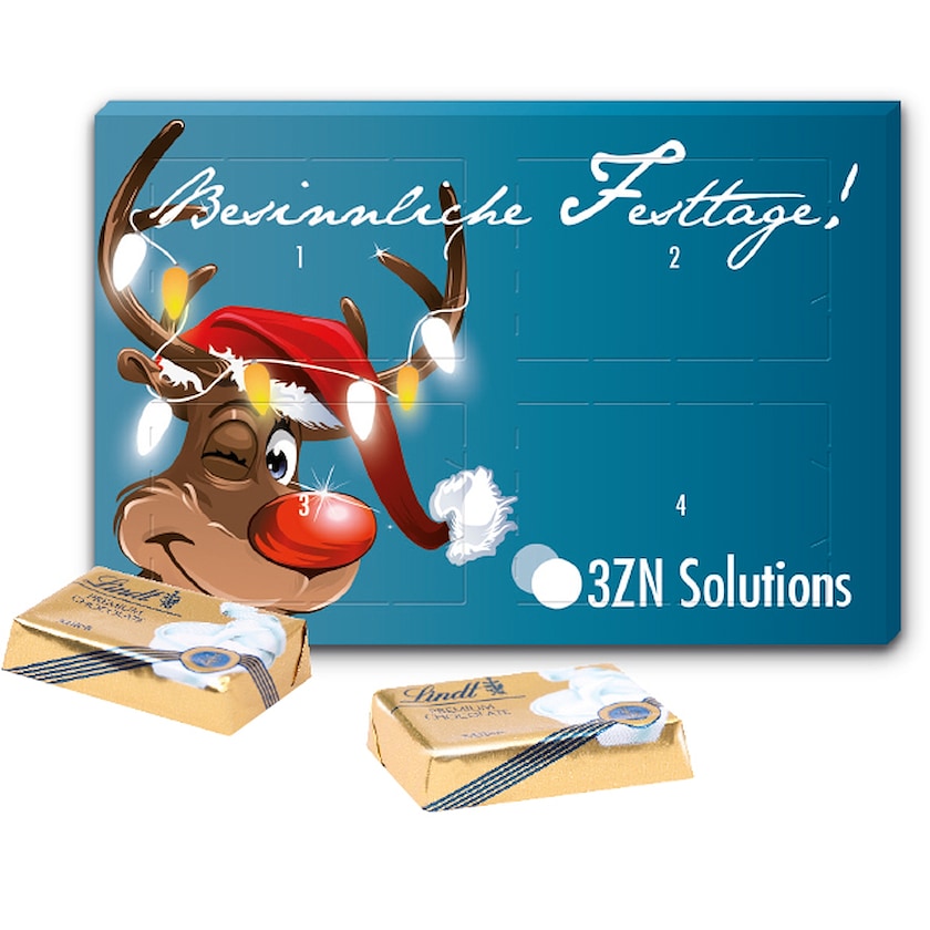 Minuscolo Calendario dell'Avvento pieno di cioccolato Lindt. Il Calendario dell'Avvento ha quattro finestre, una per ogni domenica d'Avvento. Scarica il modello di stampa e crea il tuo design.