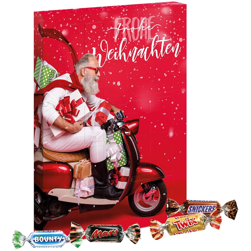 Calendario pieno di cioccolatini Mars, Snickers, Bounty e Twix. Un allegro mix di cioccolatini che sarà apprezzato da tutti! L'intero calendario viene personalizzato secondo i tuoi desideri.