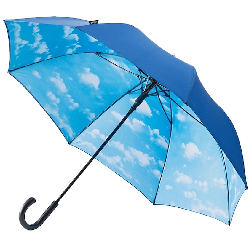 Grande ombrello di qualità con motivi di nuvole all'interno. L'ombrello ha la struttura in fibra di vetro che le dona molta stabilità. Il manico ha una comoda superficie gommosa.