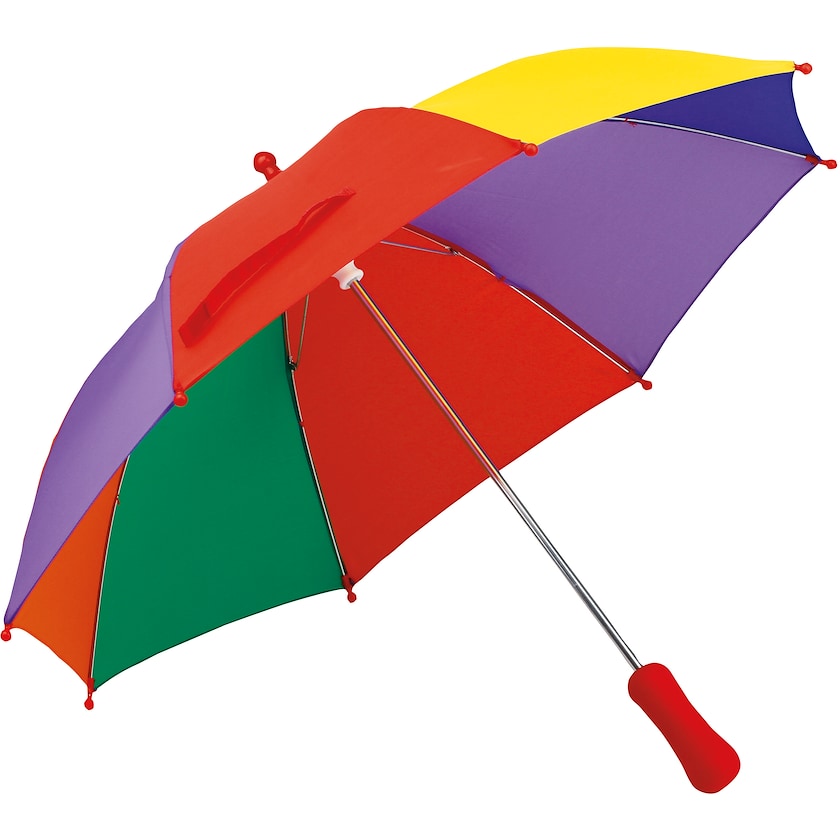 Ombrello per bambini con i colori dell'arcobaleno e manico diritto. L'ombrello Candy è dotato di meccanismo di apertura manuale.