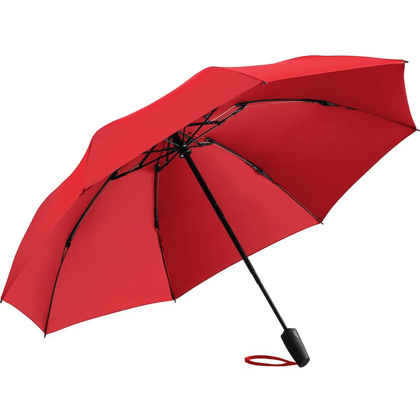 Ombrello pieghevole robusto per i temporali più forti. Questo ombrello è dotato di una struttura estremamente robusta in fibra di vetro. Si apre verso l'esterno in modo tale da diminuire il rischio che le stecche si rompano in caso di forti raffiche di vento. È inoltre dotato di un meccanismo automatico di apertura e chiusura. Il manico è ricoperto da una piacevole superficie soft-touch.