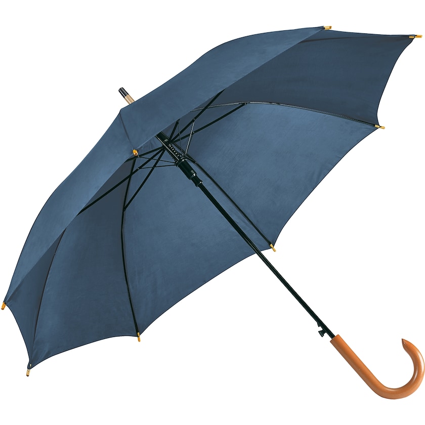 Ombrello automatico con manico in legno. L'asta e le stecche dell'ombrello sono fabbricate in metallo. Un ombrello di alta qualità disponibile in tanti colori.
