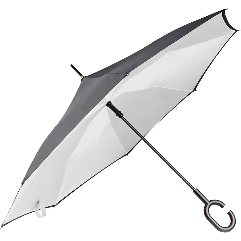 Ombrello rivoluzionario con chiusura speciale. Florence è un ombrello reversibile che viene chiuso al contrario rispetto al tradizionale ombrello. Ciò significa che non ci si bagna. In più dispone di un manico speciale che permette, se necessario, di essere tenuto con entrambe le mani.