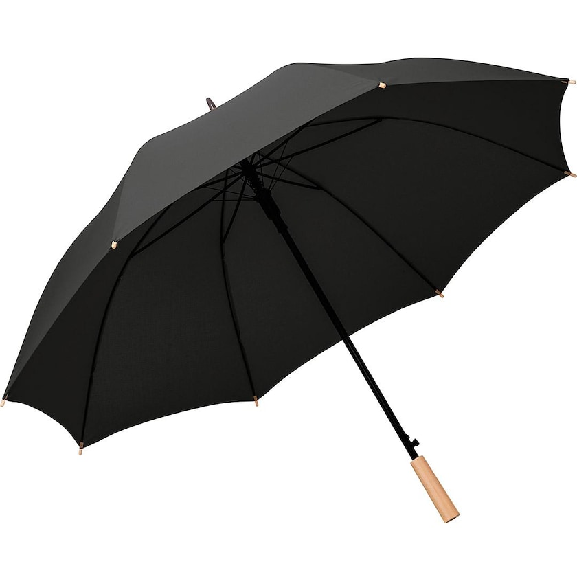 Ombrello da golf ecologico di alta qualità. L'ombrello ha una struttura rinforzata che resiste a venti forti. Il tessuto è realizzato in poliestere riciclato e il manico è in legno. Le stecche sono in fibre di vetro e l'asta è in acciaio galvanizzato.