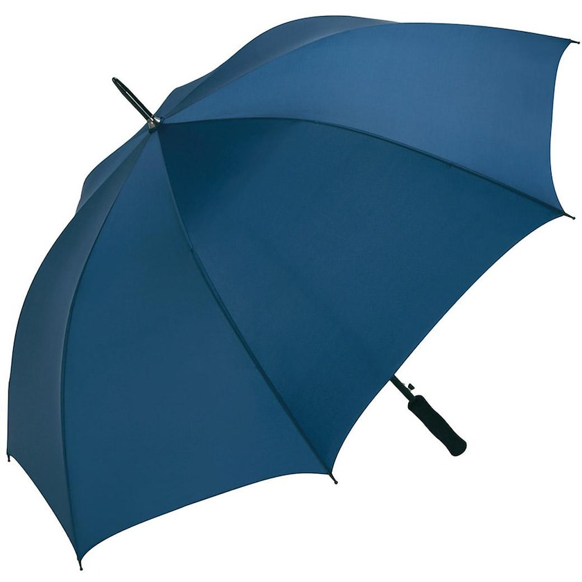 Ombrello da golf antivento a un presso interessante. Le stecche sono realizzate in fibra di vetro resistente, mentre l'asta è in acciaio galvanizzato. Il manico è ricoperto da una comoda superficie gommata.