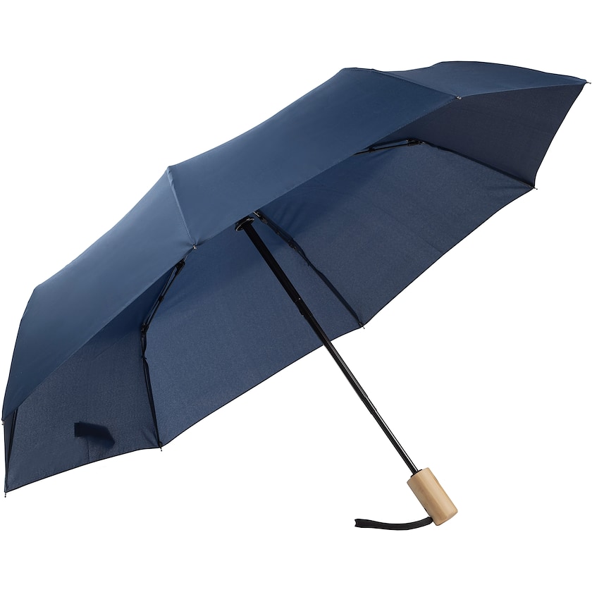 Ombrello automatico personalizzato. L'ombrello è dotato di un elegante manico di bambù. Le stecche sono in fibra di vetro. Un ombrello compatto e di alta qualità. Acquistabile da soli 10 pz.