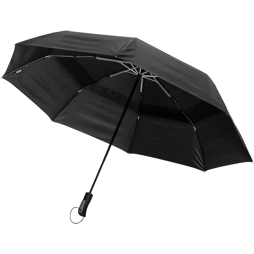 Ombrello antivento ecologico. L'ombrello è dotato di un'asta in alluminio e stecche in fibra di vetro. L'apertura e la chiusura sono automatiche. Il tessuto è realizzato in poliestere riciclato.