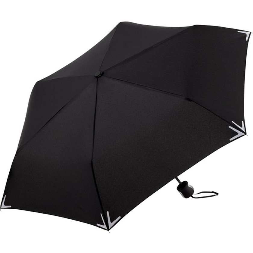 Ombrello pieghevole con struttura antivento e catarifrangenti sugli angoli. Resiste a raffiche di vento forte grazie alla sua struttura antivento. I catarifrangenti posizionati sugli angoli sono di marca 3M. Il manico è ergonomico.