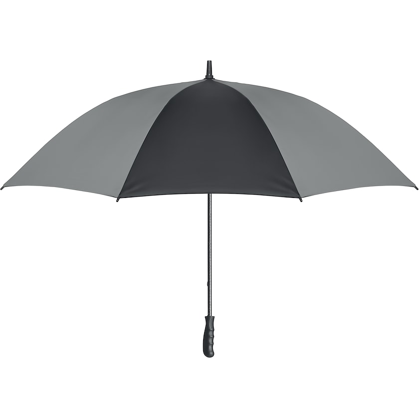 Ombrello con quattro panelli riflettenti. Telaio, stecche e l'asta sono in fibra di vetro. Il manico ha finiture di gomma.