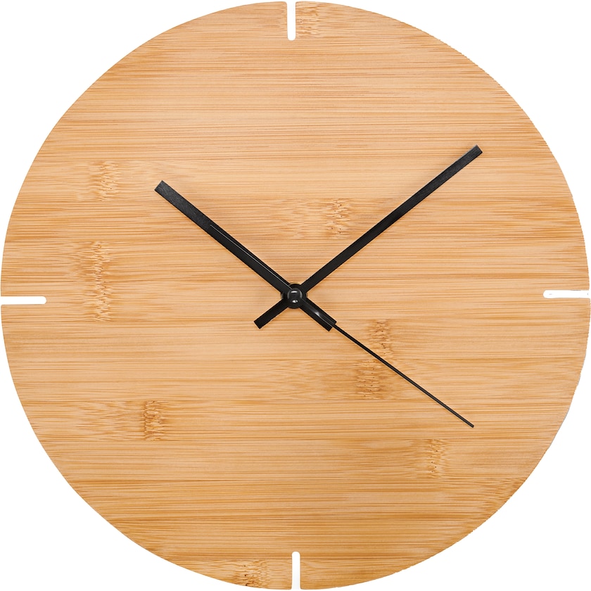 Orologio da parete in bambù. Questo orologio è alimentato da 1 pila AA (non inclusa). Il logo viene inciso a laser.