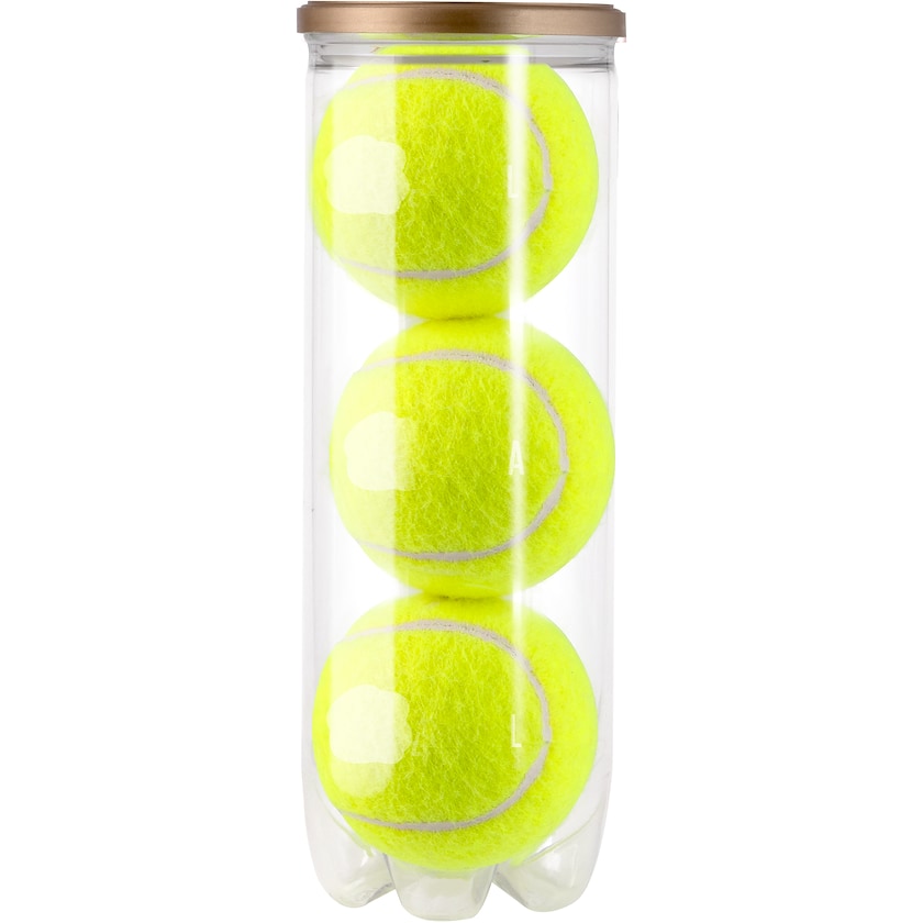 Set di tre palline da tennis personalizzate. Le palline da tennis sono prodotte in Europa e vengono consegnate all'interno di un tubo trasparente.