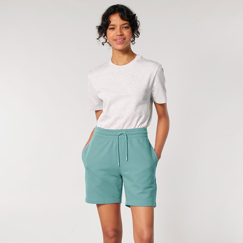Pantaloncini con morbido tessuto ecologico in cotone. Il tessuto è realizzato in 85% cotone ecologico e 15% poliestere riciclato. Modello unisex disponibile in tanti colori diversi.