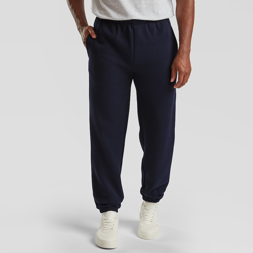Pantaloni da tuta personalizzati di alta qualità di marca Fruit of the Loom. Questo modello ha un tessuto misto con una percentuale di poliestere maggiore del solito. Per questo motivo i pantaloni sono più resistenti ed hanno una tenuta maggiore anche a numerosi lavaggi. Con elastico sul fondo. Confezionati singolarmente in busta di plastica. Disponibile anche in modello da bambino.