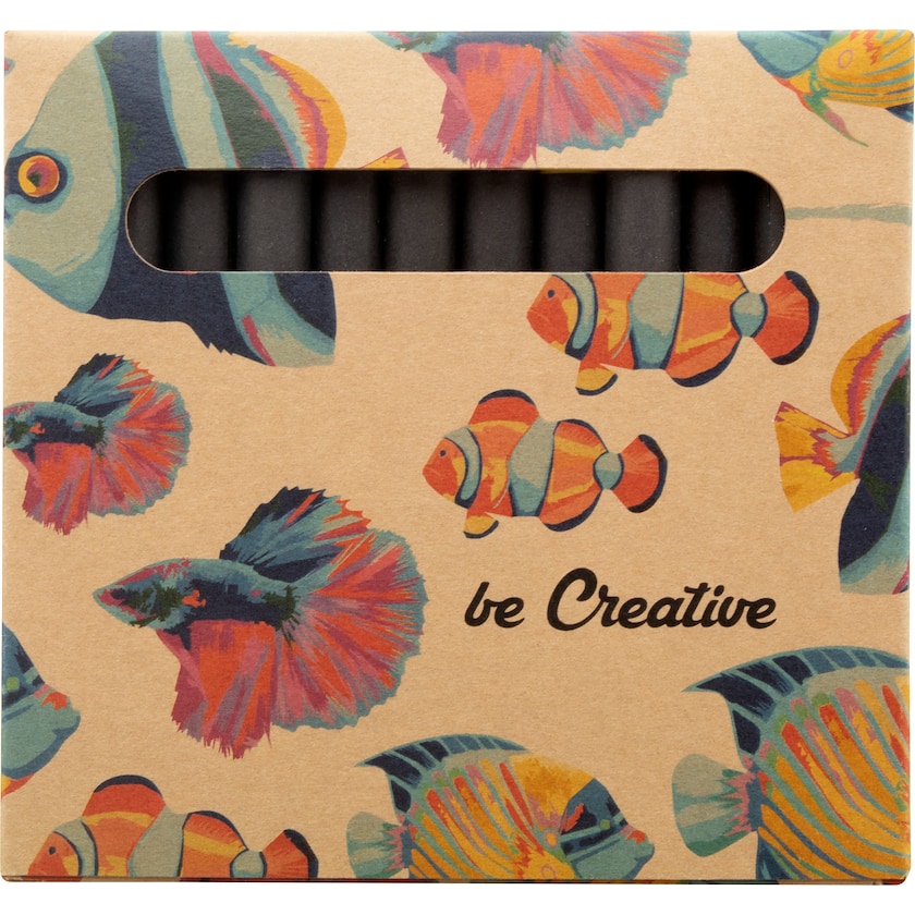 Pastelli la cui confezione viene interamente stampata secondo i tuoi desideri. Dillon contiene 12 pastelli in vari colori. La confezione di base è color naturale. Scarica il modello di stampa e disegna tu stesso l'intera confezione.