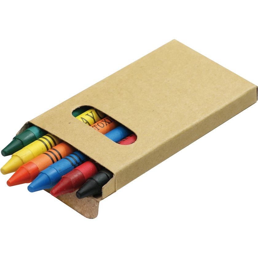Piccolo set personalizzato con 6 pastelli a cera in scatola color naturale. I bimbi non ti danno pace? Dai loro dei pastelli a cera!