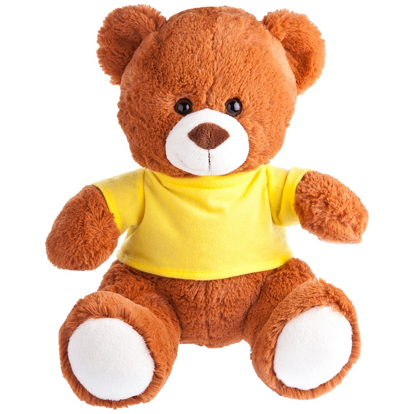 Orsetto con maglietta gialla. Da riempire di coccole! La personalizzazione viene effettuata tramite stampa sulla maglietta.