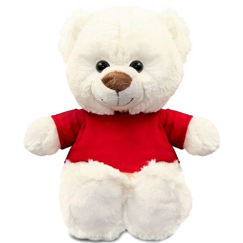 Orsetto bianco con maglietta rossa. Altezza: 27 cm. T-shirt fornita separatamente.