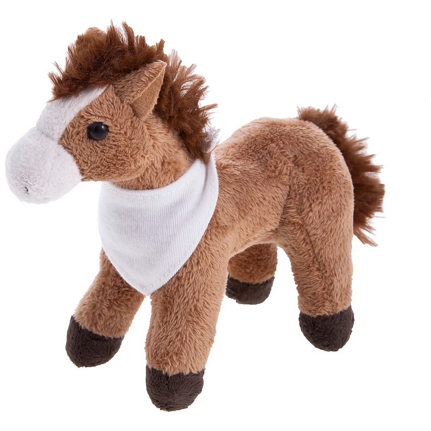 Cavallino di peluche con fazzoletto bianco su cui stampare. Fazzoletto confezionato separatamente. Un regalo perfetto per i bimbi che amano i cavallini!