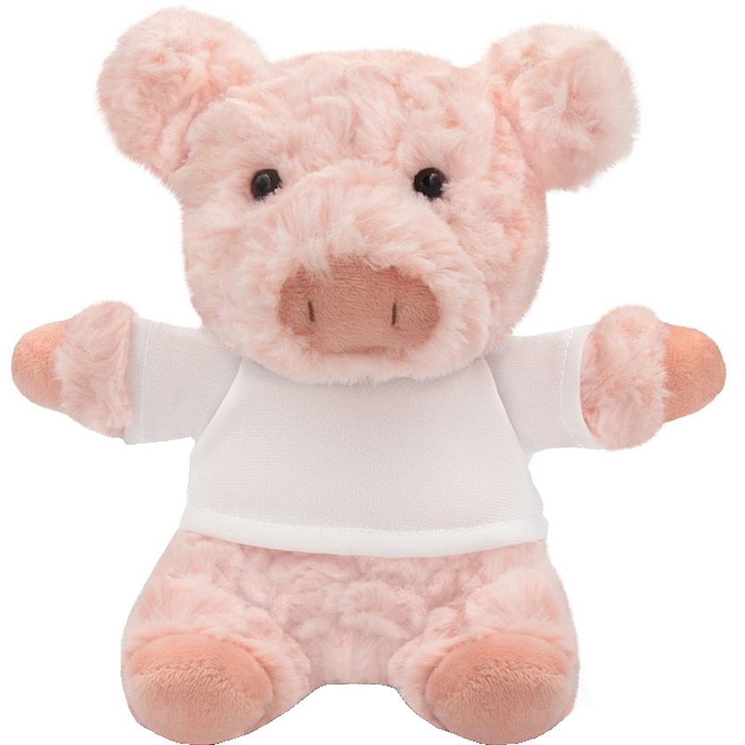 Peluche a forma di dolce maialino. Oswald ha una maglietta bianca sulla quale viene effettuata la stampa. La maglietta viene consegnata separatamente dal peluche.