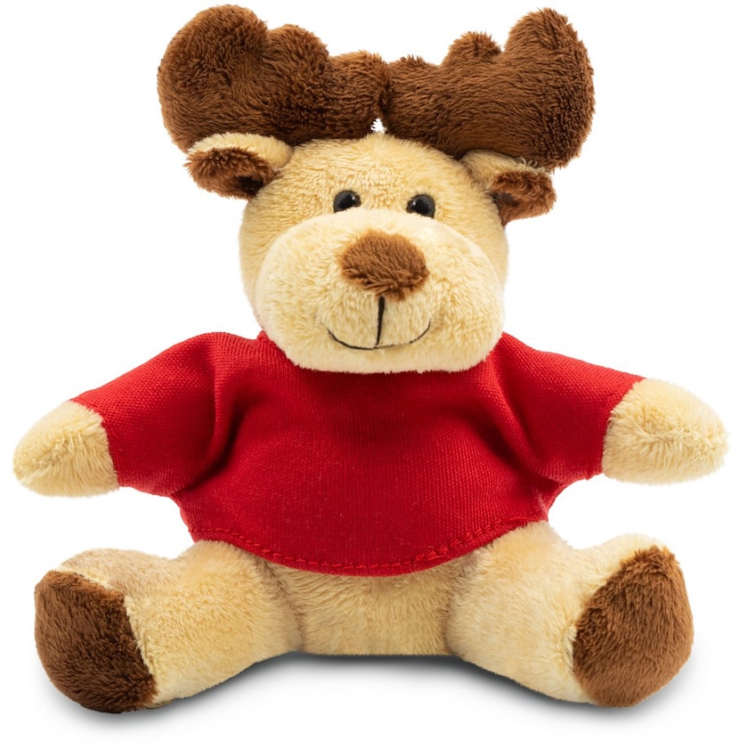 Natale è alle porte! Renna con maglietta rossa. Personalizzabile con logo sulla maglietta. Maglietta confezionata separatamente.
