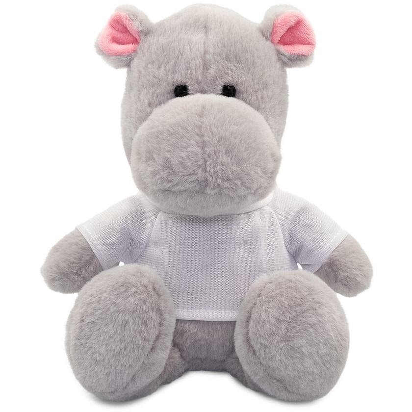 Peluche a forma di ippopotamo. Personalizzato con logo. Personalizzabile con stampa sulla maglietta. Maglietta confezionata separatamente.