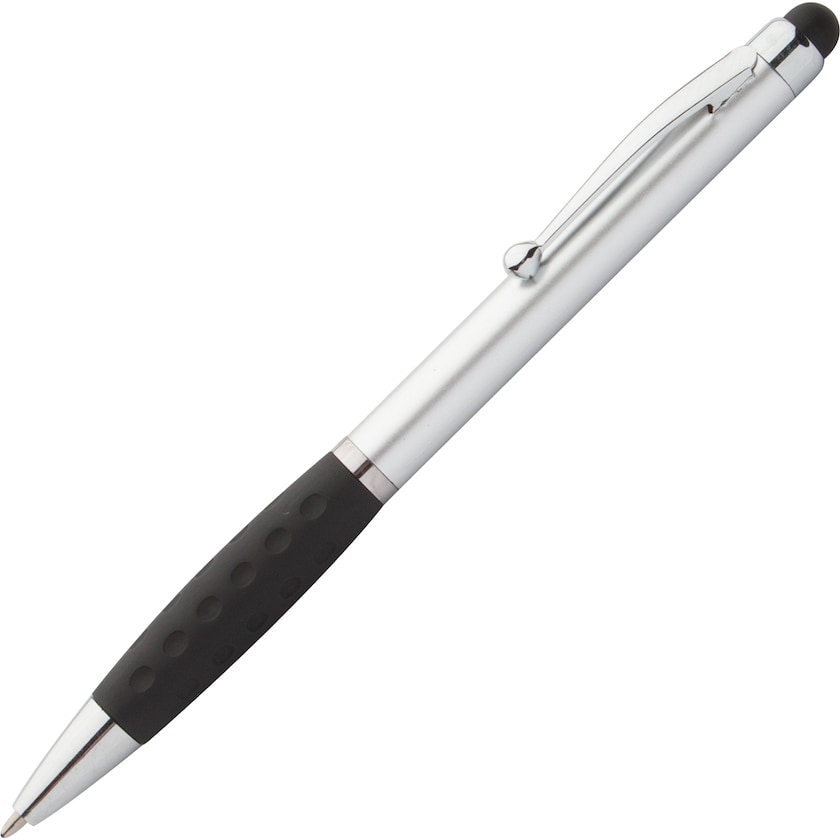 Penna touch con impugnatura. La penna ha dei bei dettagli cromati e cartuccia blu.