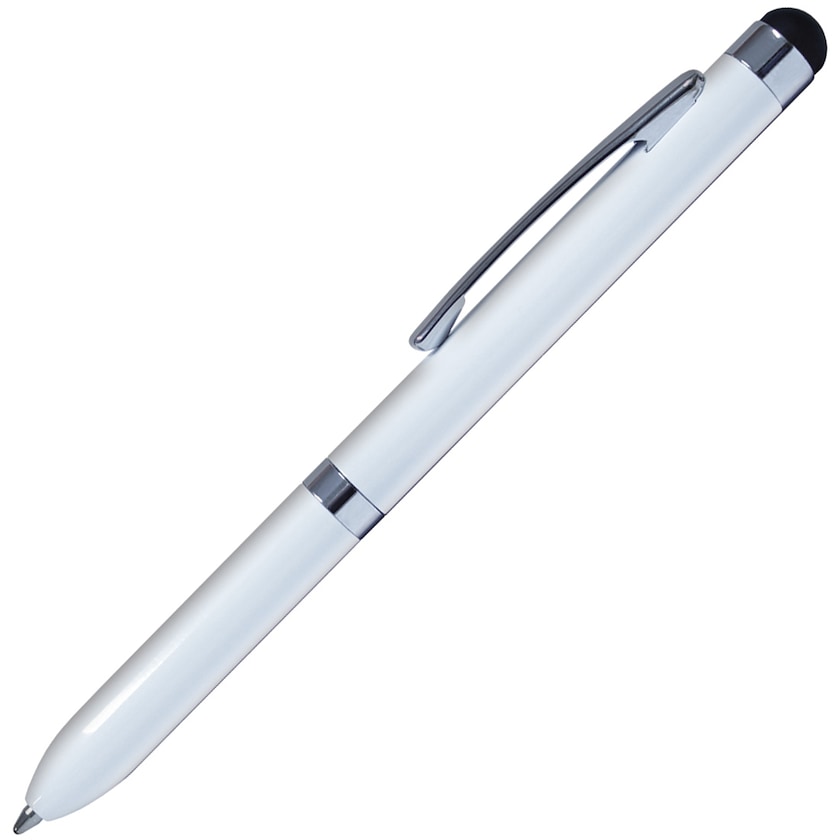 Questa penna touch in metallo è piccola ed ha un meccanismo a rotazione. Disponibile in bianco o nero.