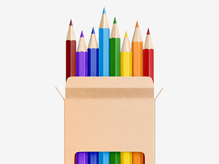 Le matite colorate vengono personalizzate sempre sulla confezione. Lì hai abbastanza spazio per la tua grafica e il tuo logo è esposto al meglio.